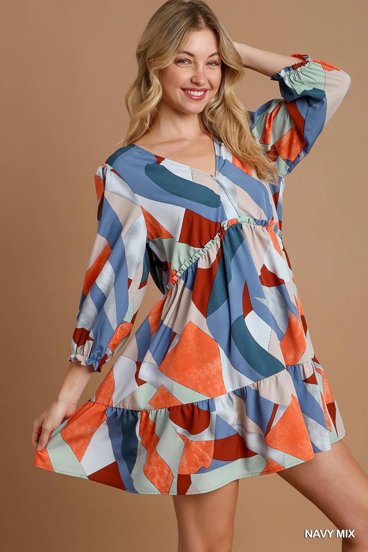 Inform when this item available Umgee Abstract V-Neck Tiered Printed Dress
