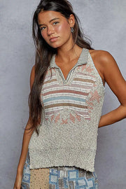 Inform when this item available POL Striped Collar Sweater Vest with Star Patch