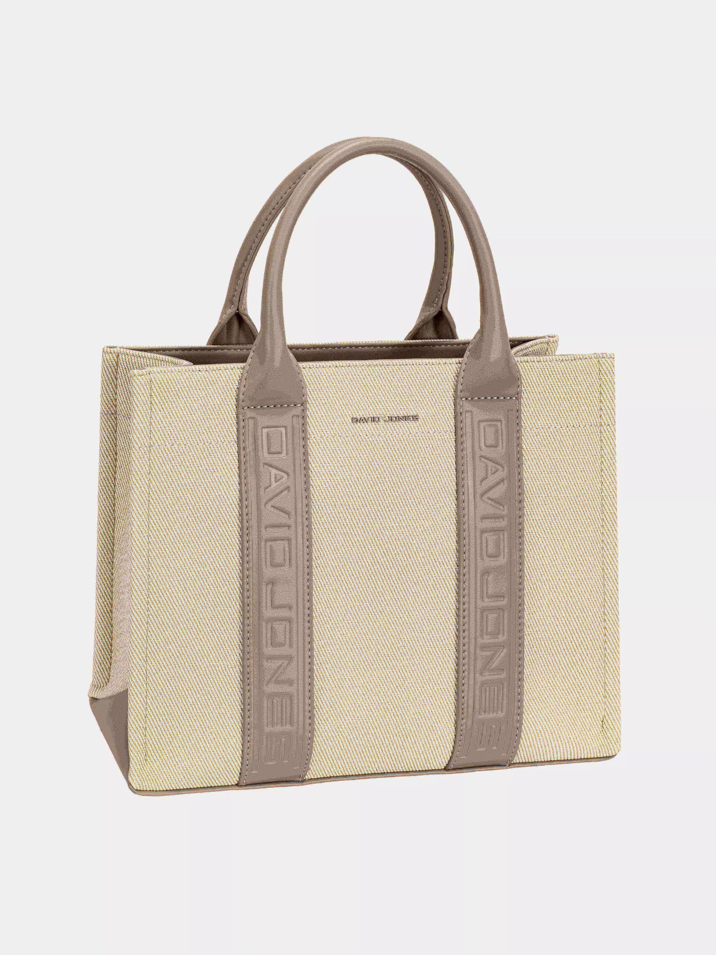 David Jones Canvas Tote Handbag with Contrast Leather Handles
