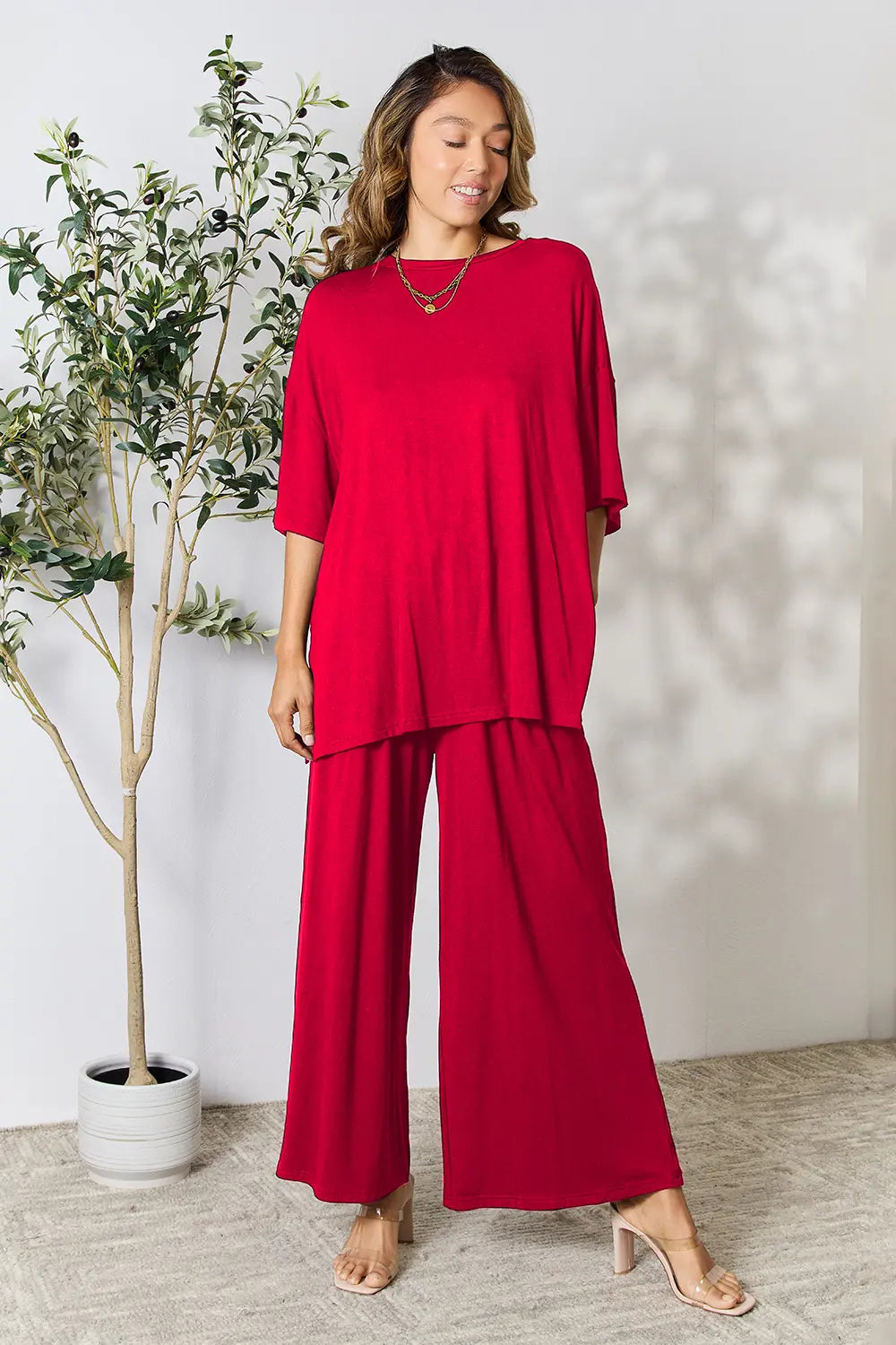 Inform when this item available Double Take Full Size Round Neck Slit Top and Pants Set