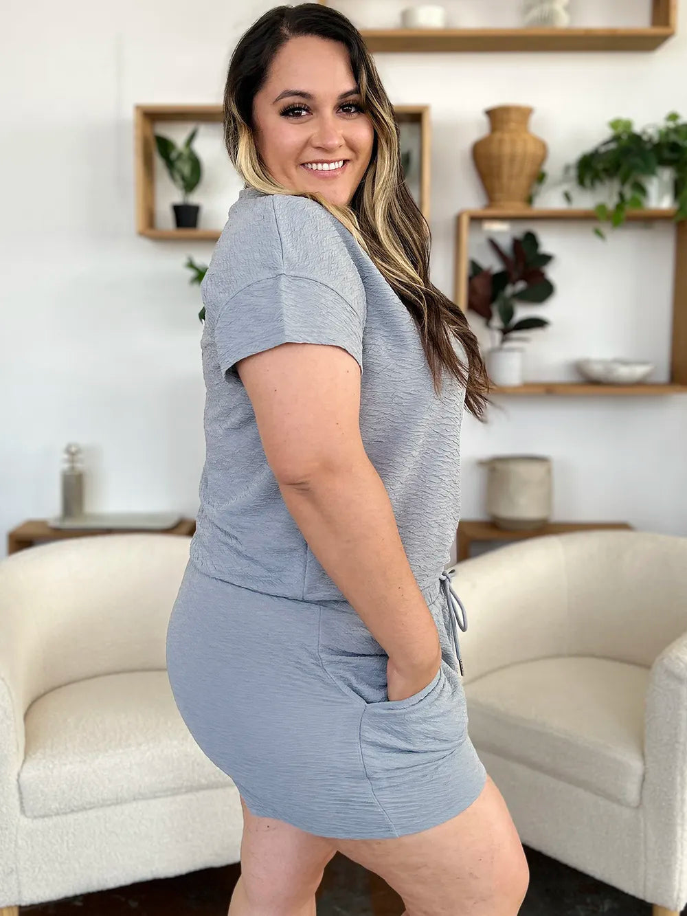 Inform when this item available Double Take Full Size Texture Short Sleeve T-Shirt and Drawstring Shorts Set