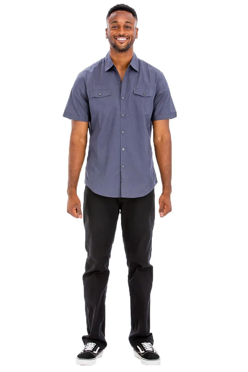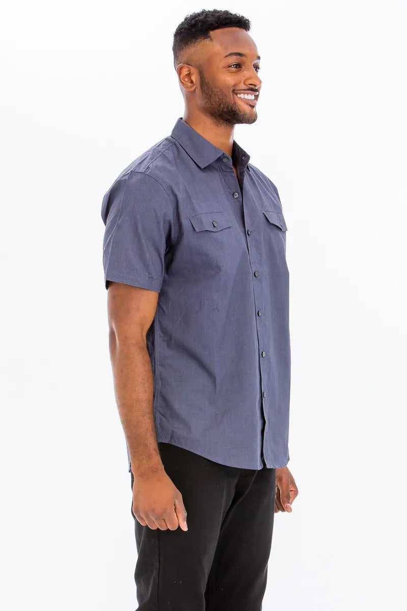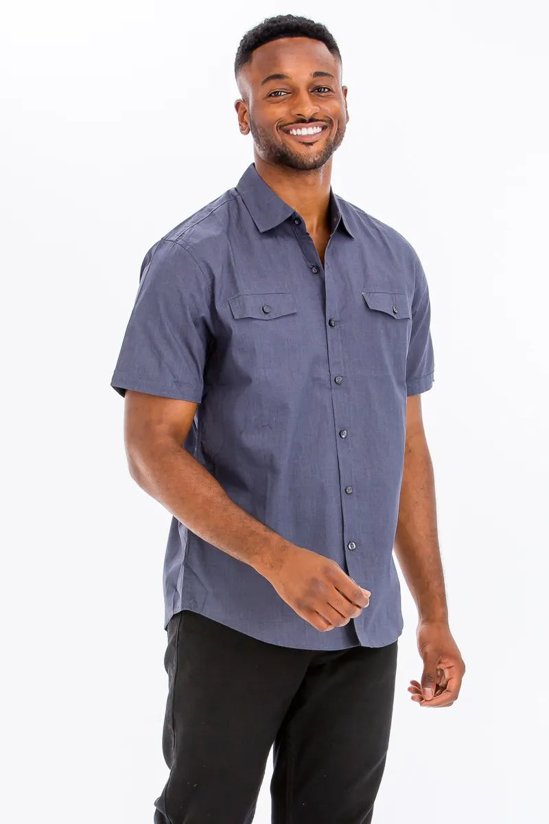 WEIV Men's Short Sleeve Solid Button Down Shirt