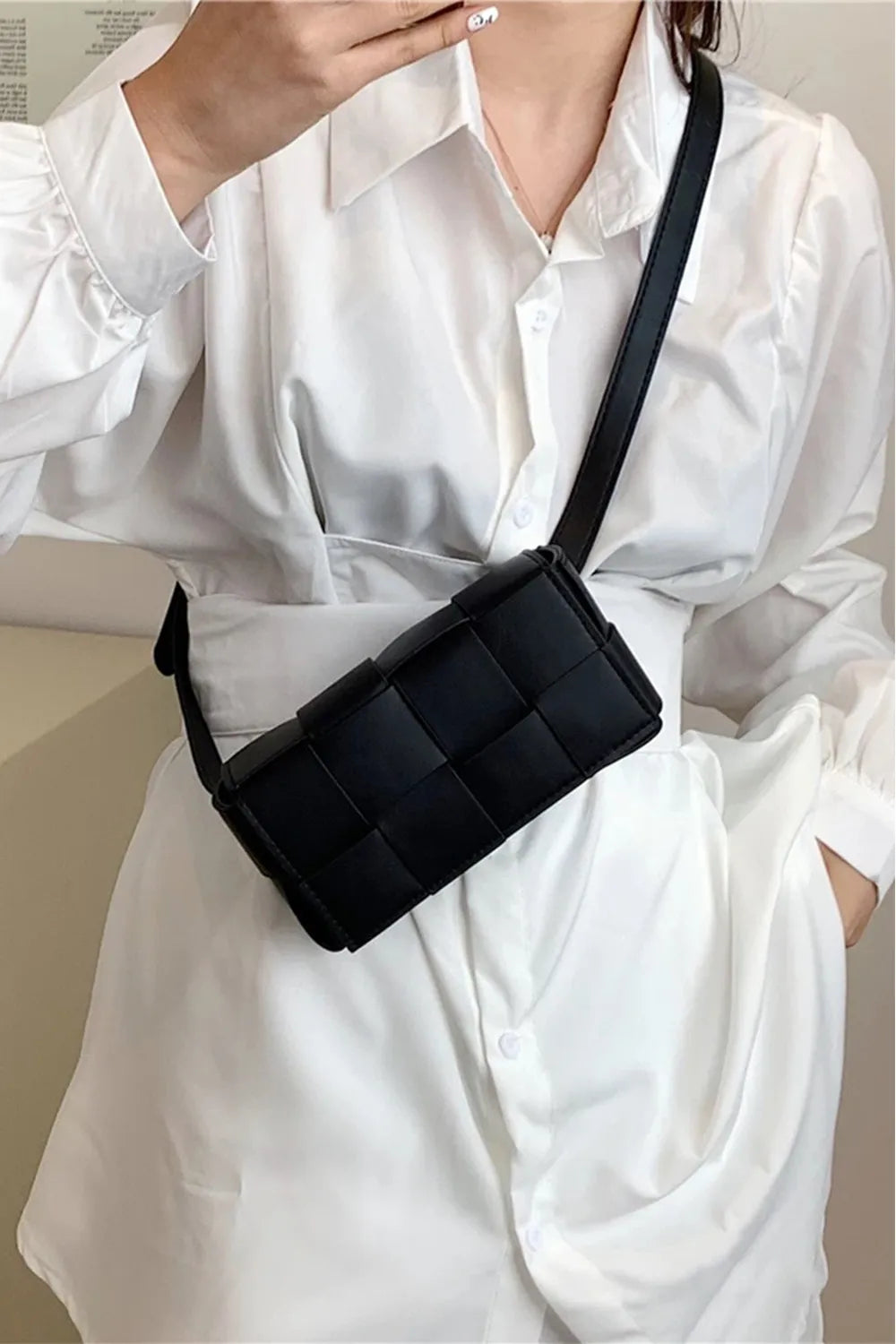 Vegan Leather Woven Crossbody Bag is a stylish and sustainable accessory made from vegan leather. This crossbody bag is not only fashionable but also eco-friendly, making it a great choice for those who care about animal welfare and the environment. With its versatile and chic design, this bag is perfect for both casual outings and more formal occasions, adding a trendy to your outfit.